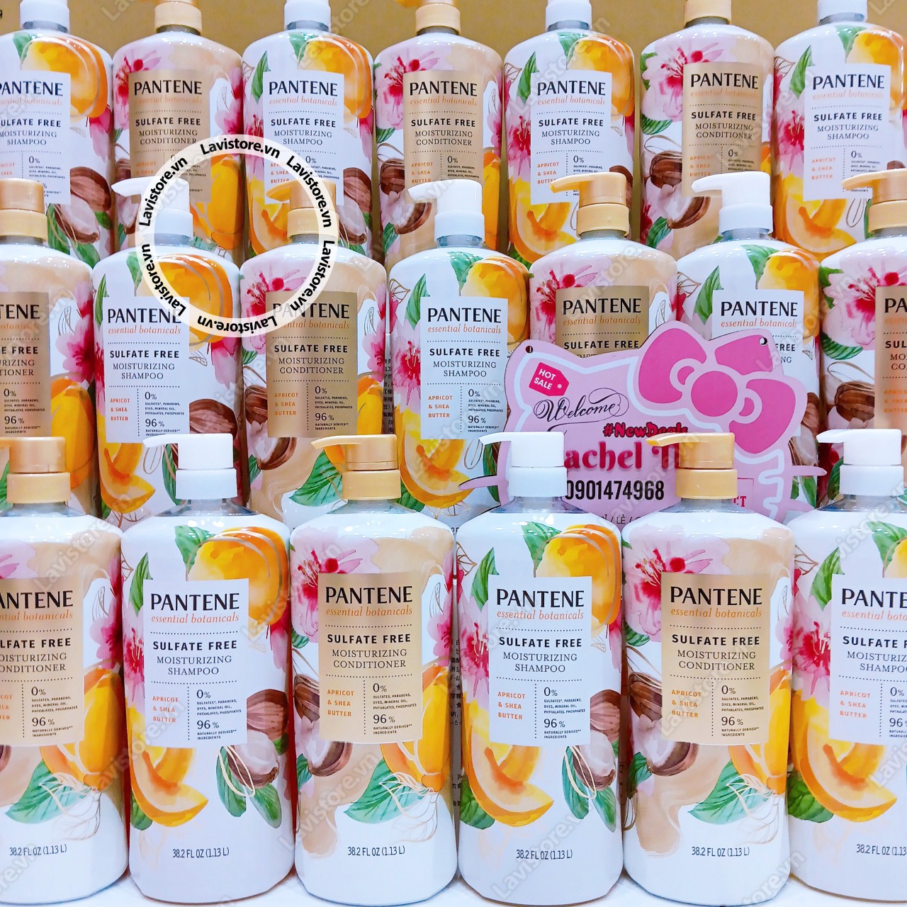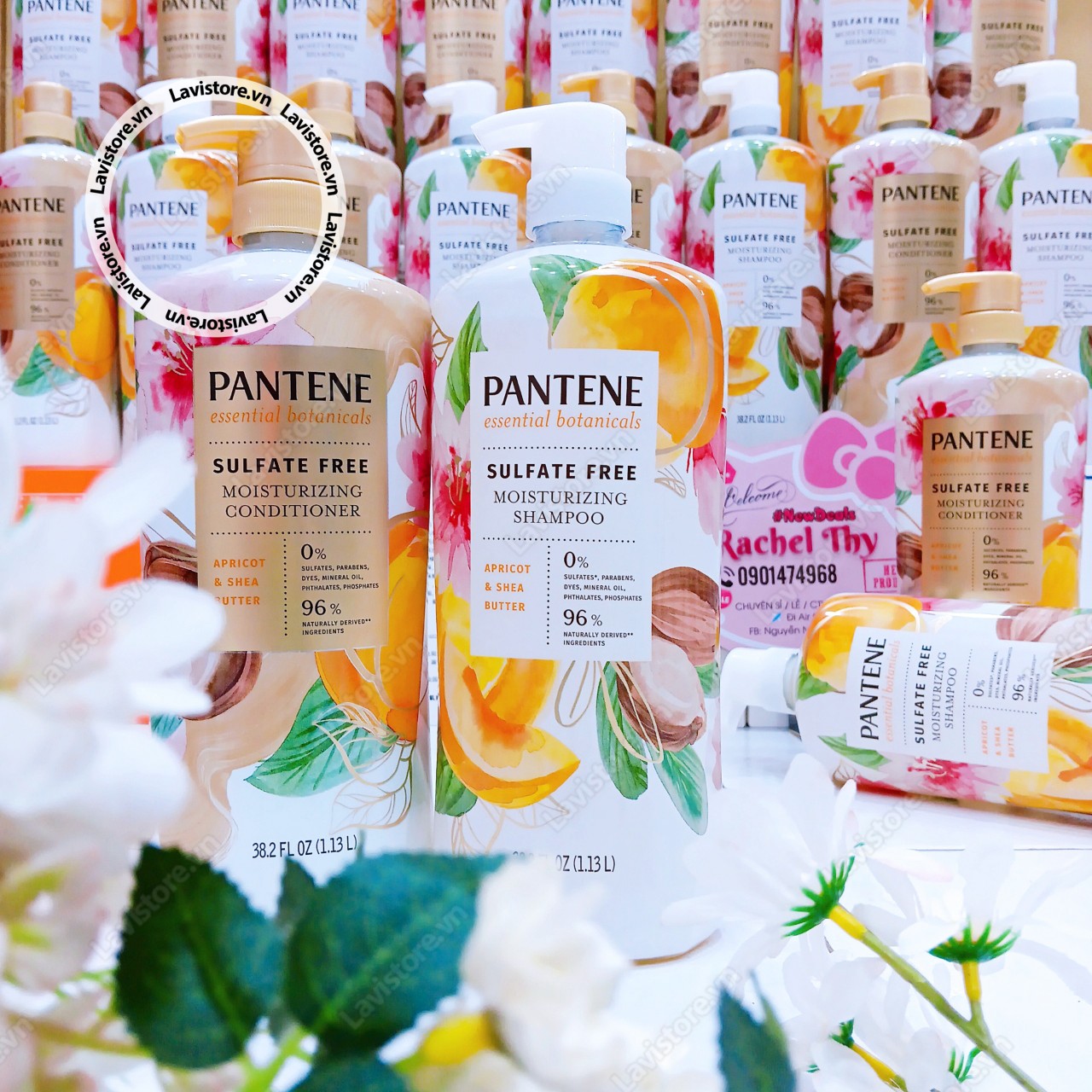 Set dầu gội và xả Pantene Essential Botanicals Sulfate Free Moisturizing Shampoo & Conditioner 1.13L (Apricot & Shea Butter) nuôi dưỡng và làm chắc khỏe mái tóc bằng cách kết hợp các thành phần dưỡng ẩm từ thực vật tự nhiên và tạo độ bóng mượt để giúp phục hồi độ bồng bềnh của tóc.
