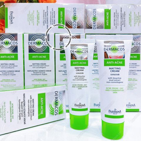 Kem Dưỡng Kiềm Dầu Giảm Mụn Dermacos Anti-Acne Matting Cream giúp bảo vệ da trước sự xâm nhập của vi khuẩn, bụi và tác hại của tia cực tím UVA/UVB. Ngoài ra, còn giúp hạn chế và điều hòa hoạt động của tuyến bã nhờn, giảm tình trạng bóng nhờn đem lại hiệu ứng láng mịn cho da, ngăn ngừa hình thành mụn mới.