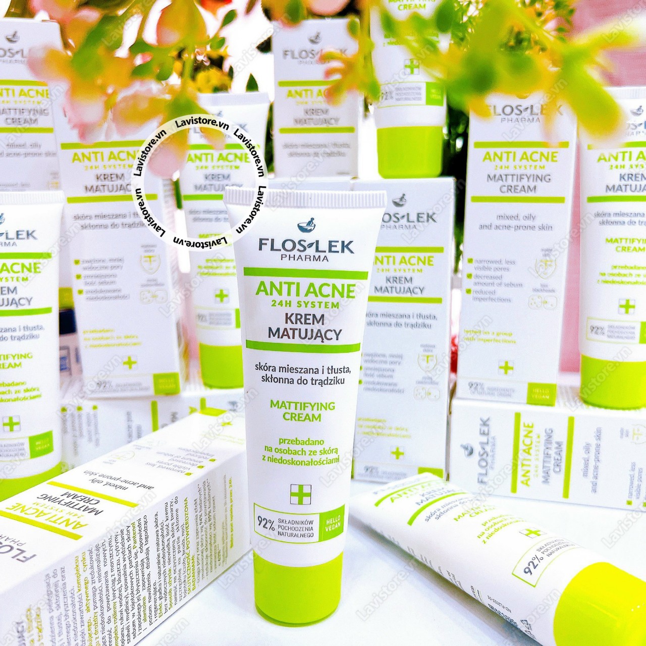 Kem Ngăn Ngừa Mụn Kiểm Soát Dầu & Điều Tiết Nhờn Floslek Pharma Mattifying Cream 50ml thuộc dòng sản phẩm ngừa mụn Anti Acne của thương hiệu Floslek. Floslek Pharma Mattifying Cream chứa chiết xuất cải xoong, rễ ngưu bàng, cây xô thơm, vỏ chanh vàng, thường xuân, tảo gạc hươu và nhiều thành phần thiên nhiên khác giúp da láng mịn, điều tiết lượng dầu và nước trên da, kiểm soát bã nhờn, cho làn da ẩm mượt, mịn màng và không bóng nhờn. Đồng thời kem có tác dụng làm se da, chống ngứa và chống viêm da, ngăn hình thành tổn thương da, không gây bí hay tắc lỗ chân lông, trả lại cho bạn làn da khỏe mạnh và mịn màng và làm dịu những tổn thương trên da do mụn. Sản phẩm phù hợp với da dầu, da hỗn hợp.