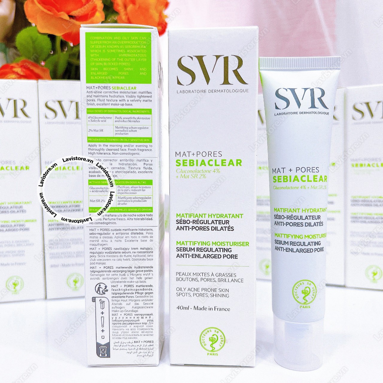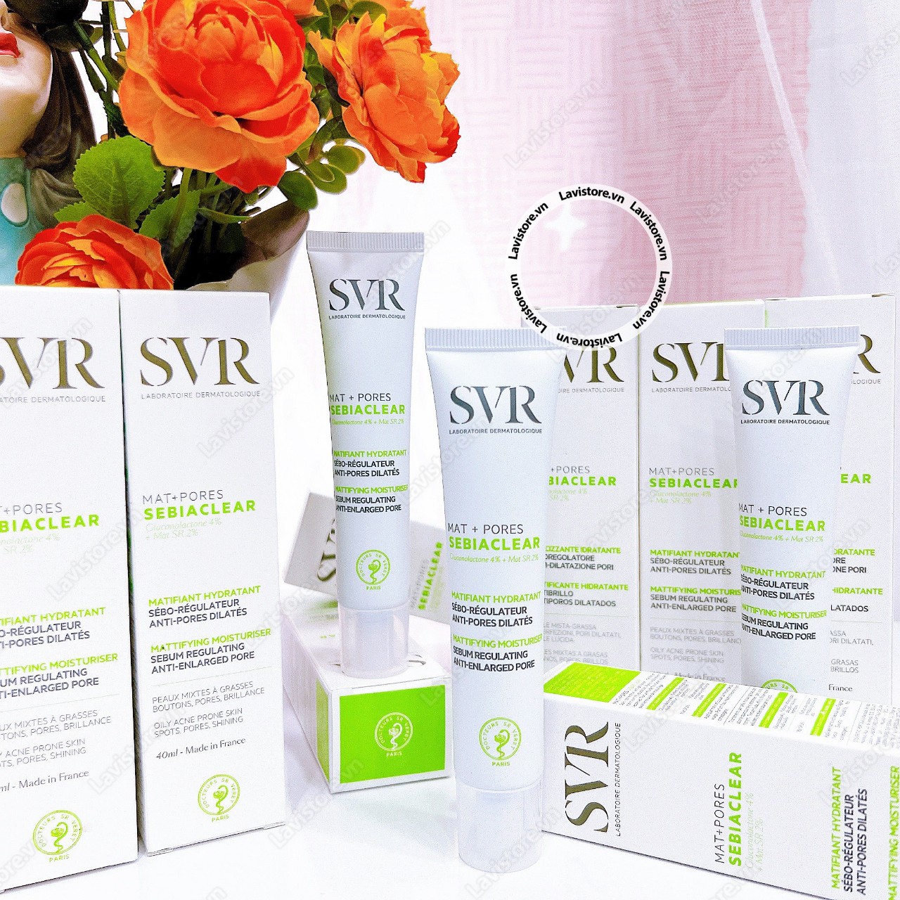 - Kem Dưỡng Cải Thiện Mụn, Thông Thoáng Lỗ Chân Lông SVR Sebiaclear Mat + Poreschứa Mat SR giúp điều tiết bã nhờn và lượng dầu thừa trên da, giúp làn da khô thoáng, mịn màng.