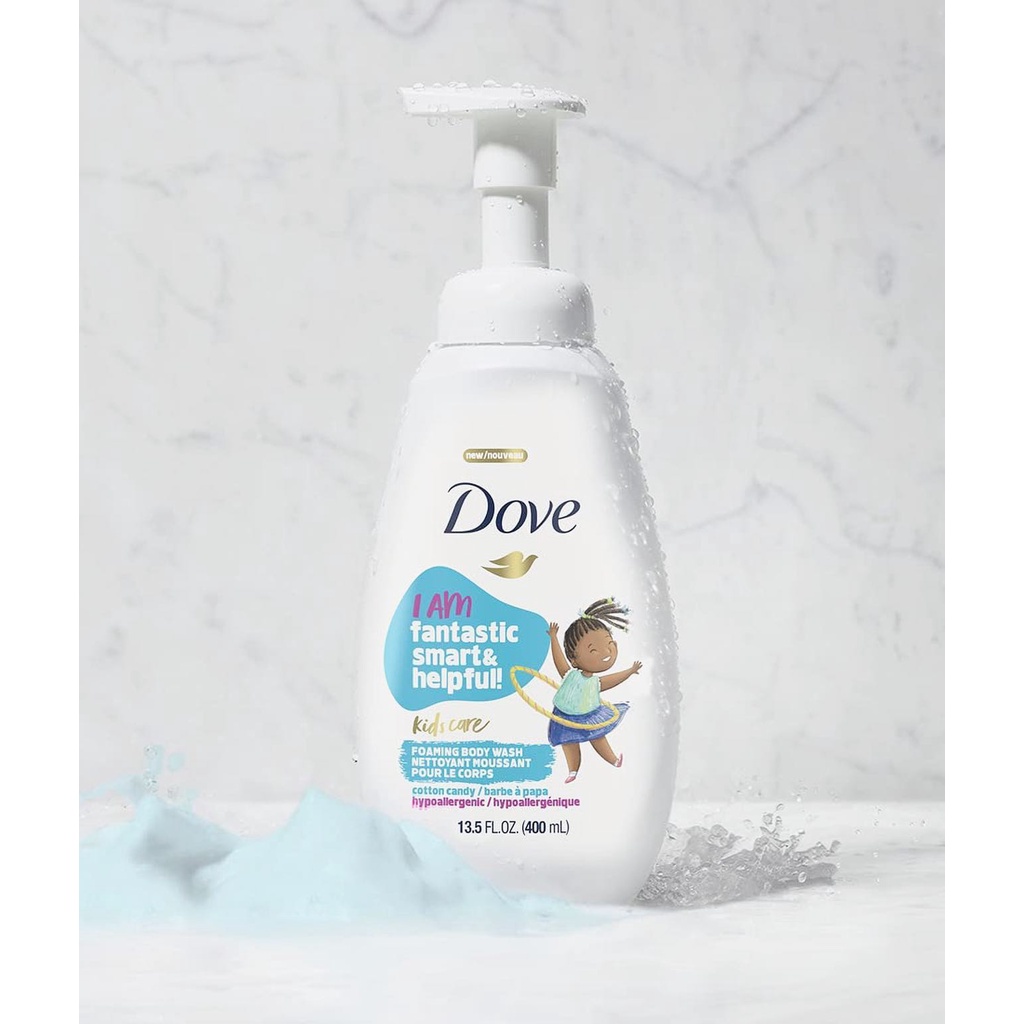 - Mỗi chai kẹo bông tắm tạo bọt Dove Kids Care đều có lời khẳng định 'Tôi thật tuyệt vời, thông minh và hữu ích!' để trẻ nói như một phần thói quen của chúng – hoàn hảo để nhắc nhở trẻ đối xử tốt với bản thân