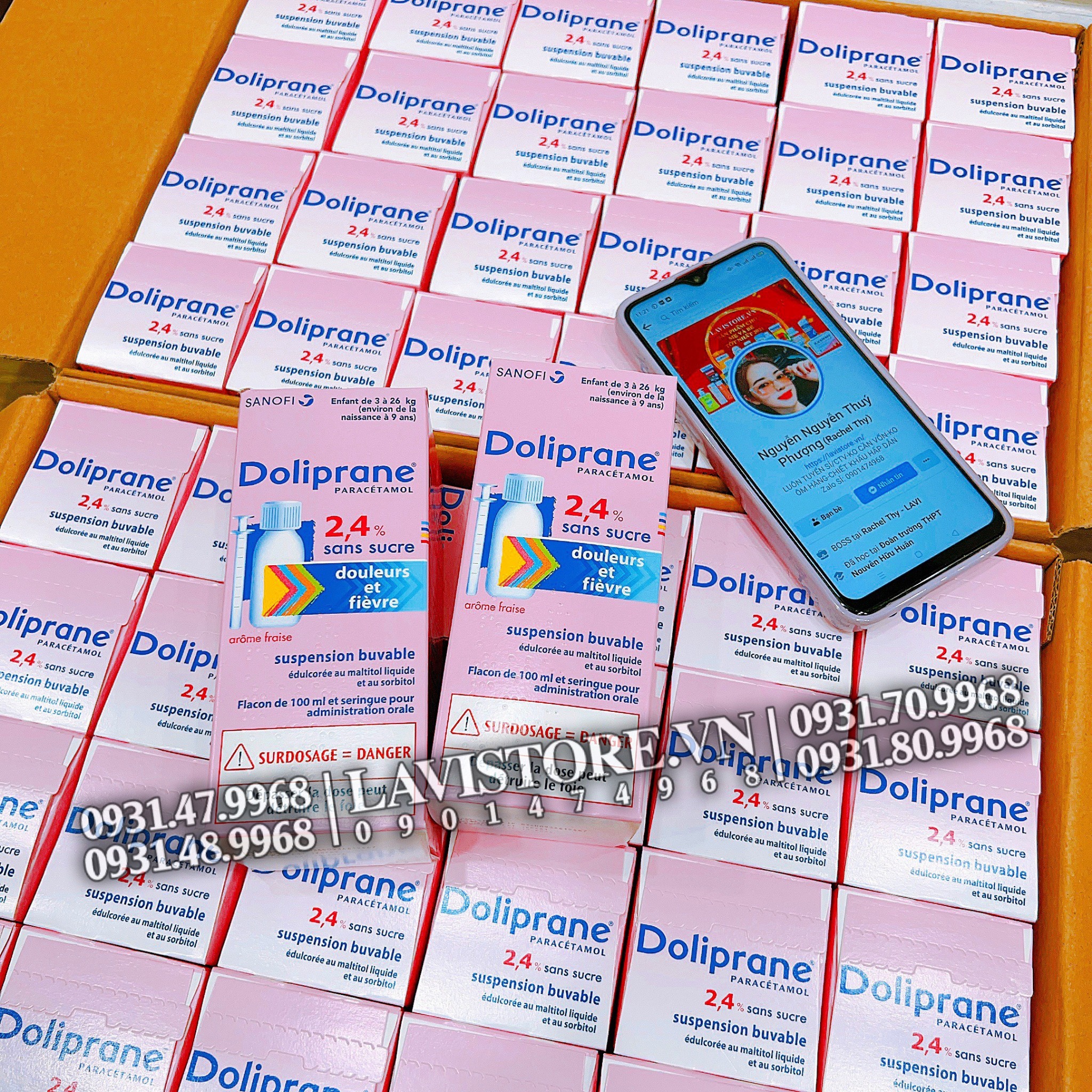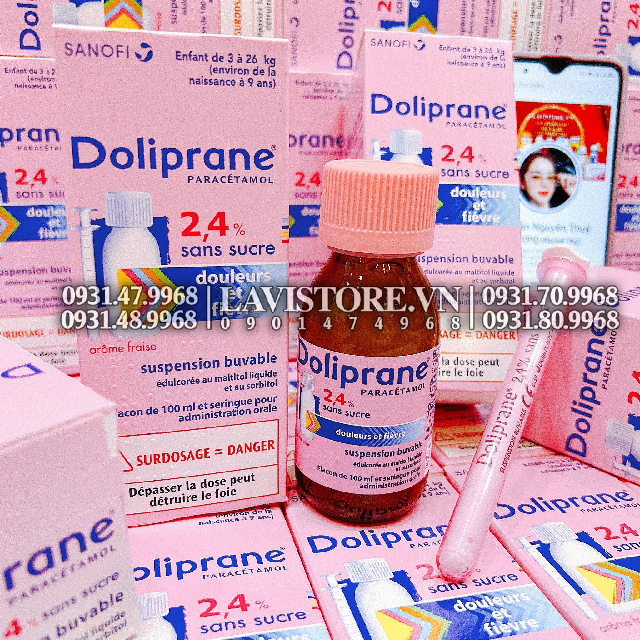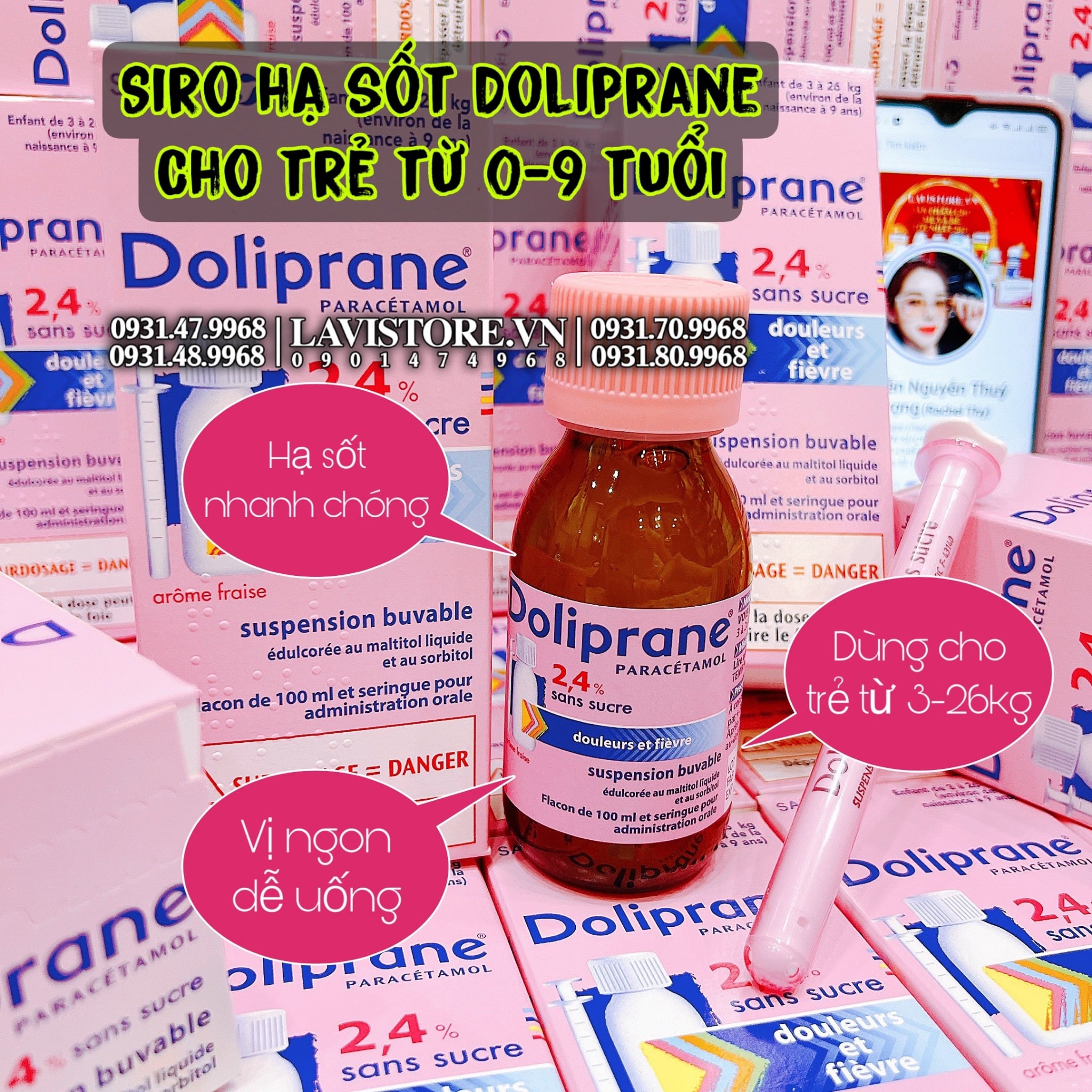 - Doliprane dạng sirô này là loại thuốc cho trẻ được bán ở Pháp mà không cần đơn của bác sĩ vì tất cả các bé vừa sinh ra trên 3 kg đều dùng được mà không có tác dụng phụ gì.