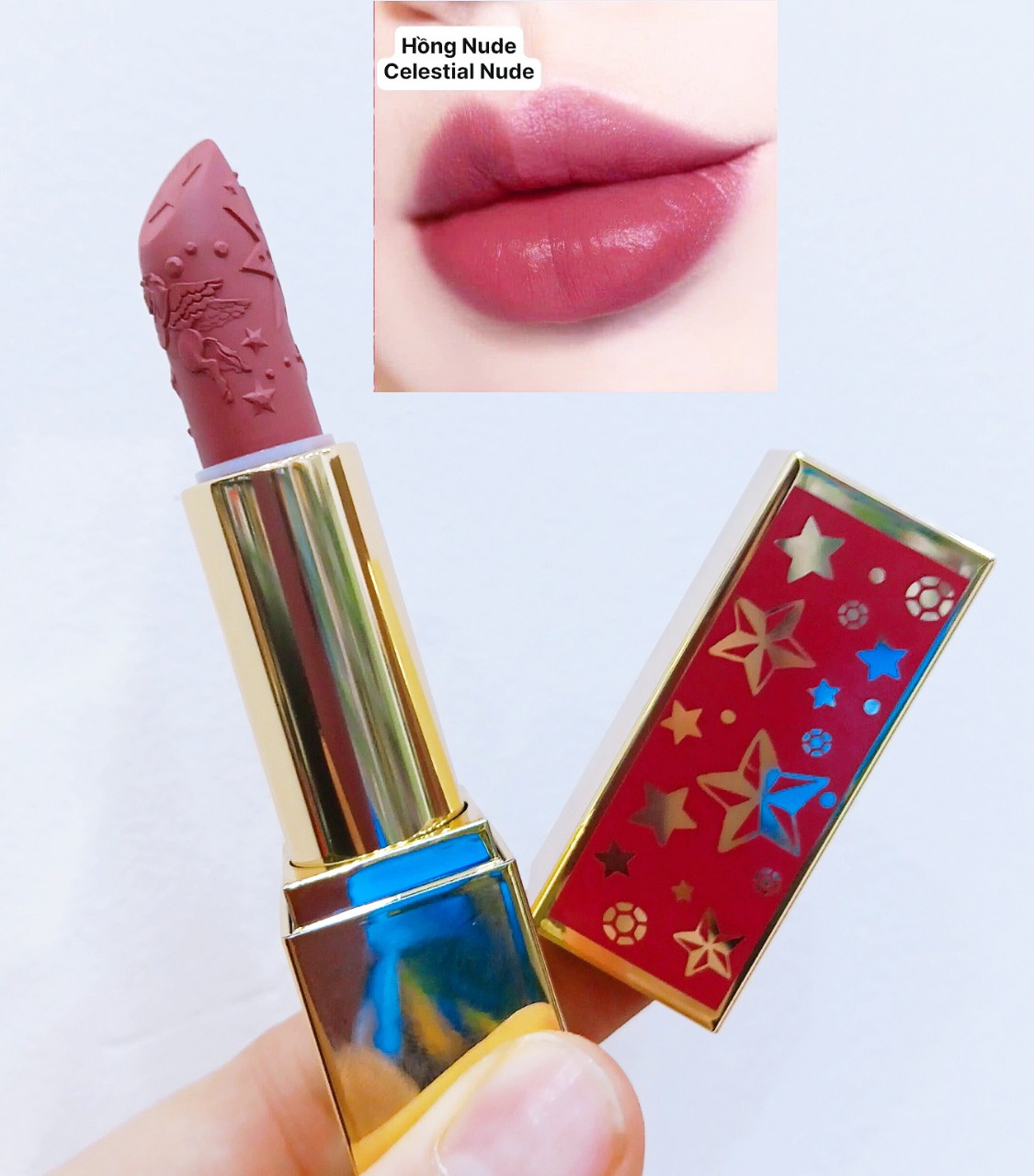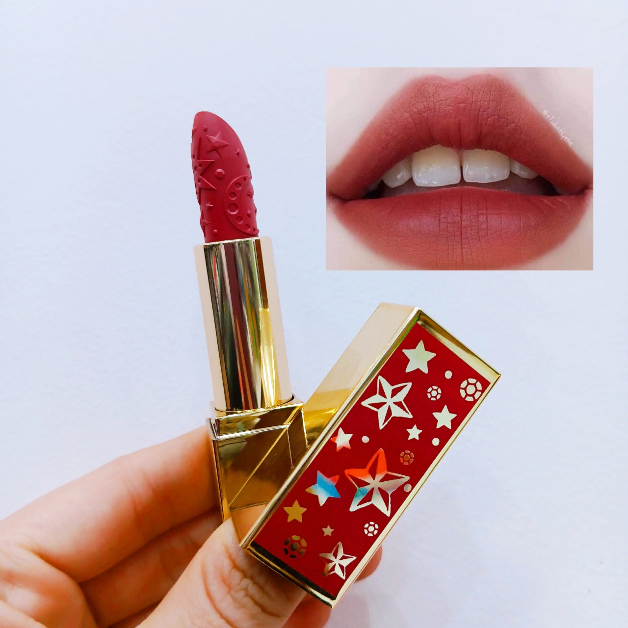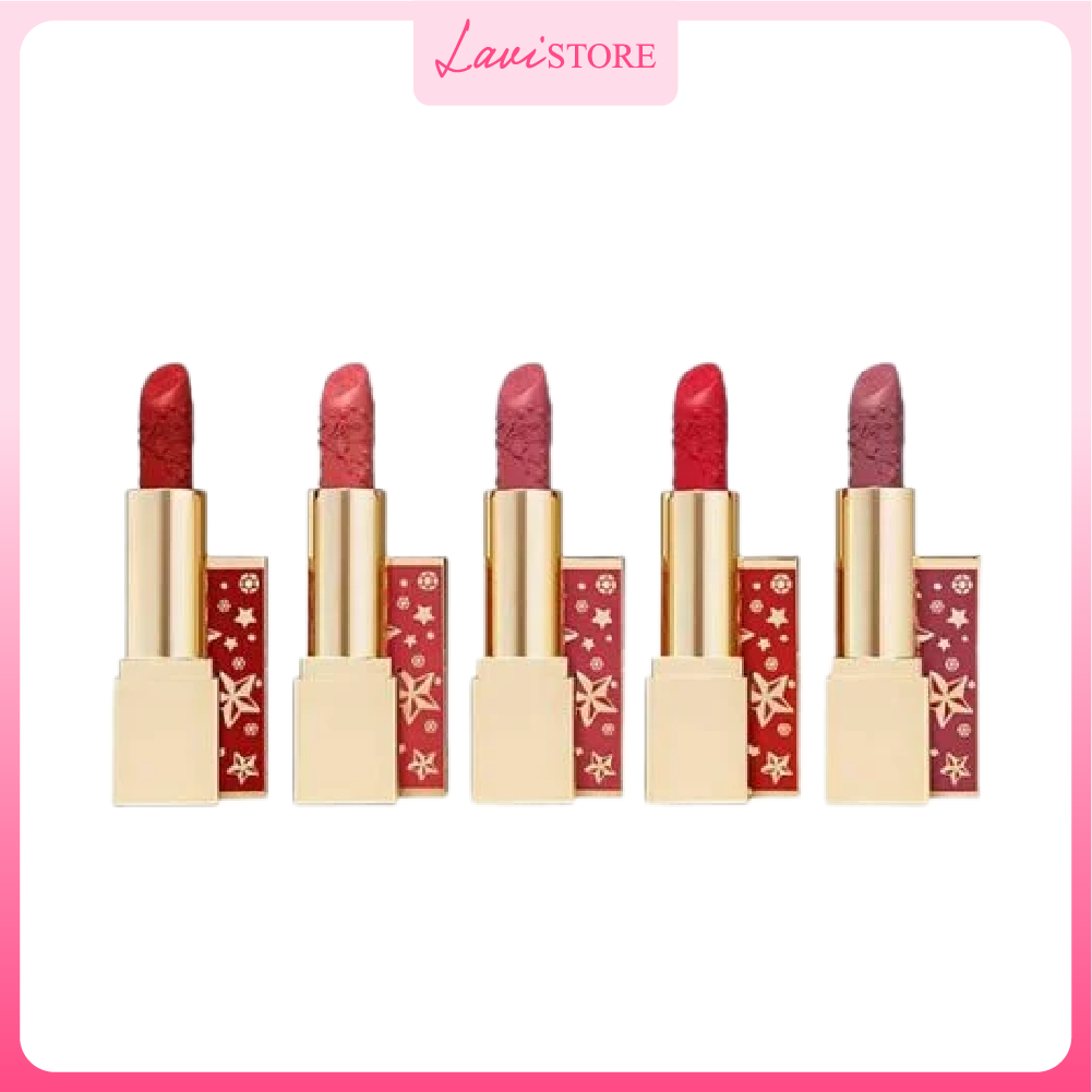 - Diện mạo vẫn mang nét sang trọng, thỏi son giới hạn trong thiết kế lớp vỏ phiên bản lễ hội, cùng màu với tone son bên trong