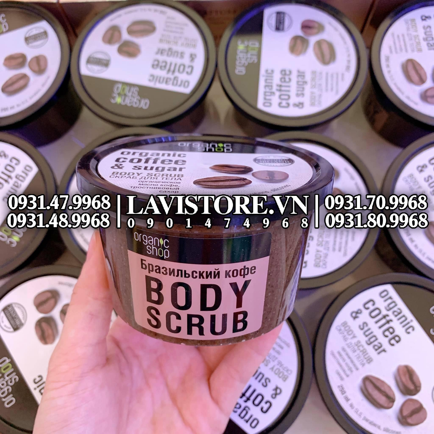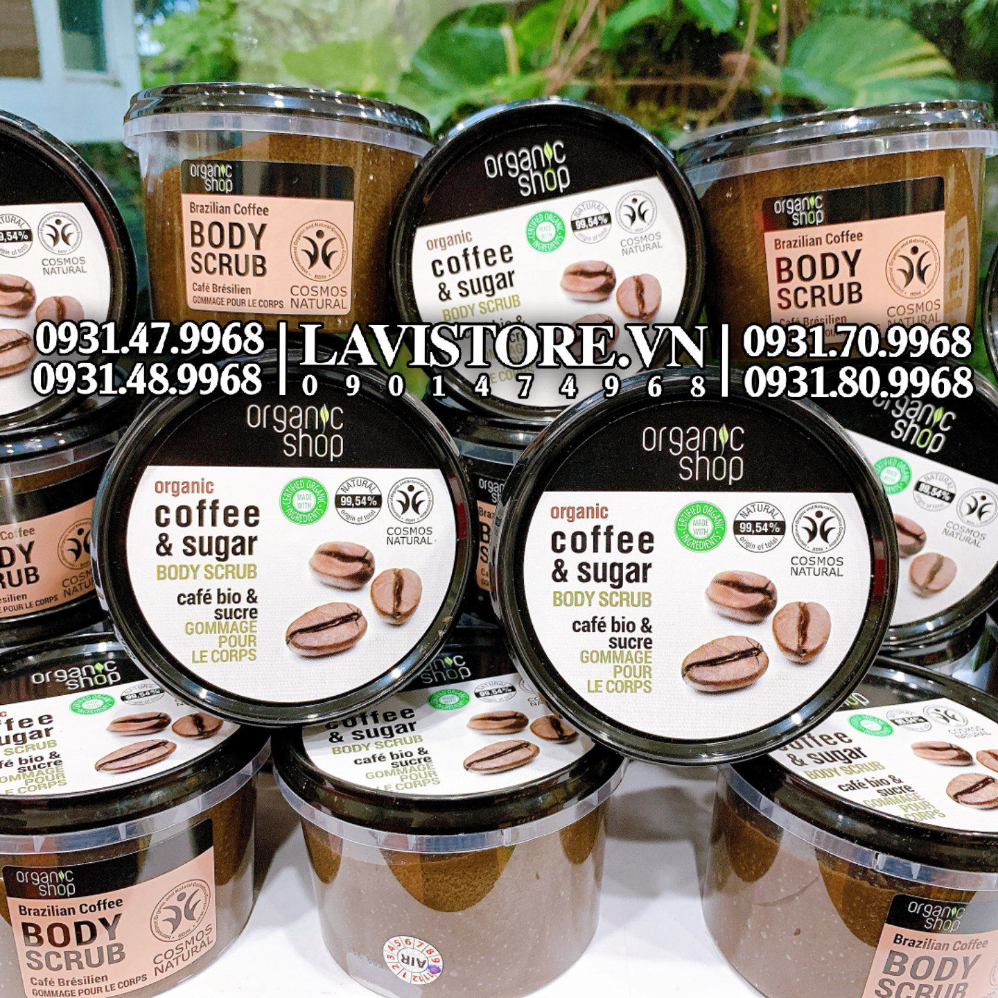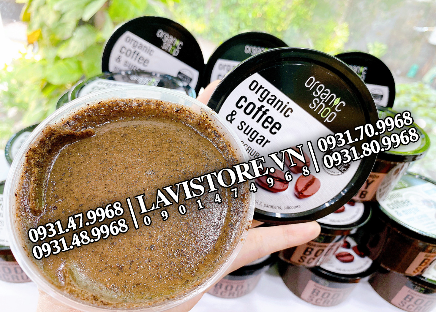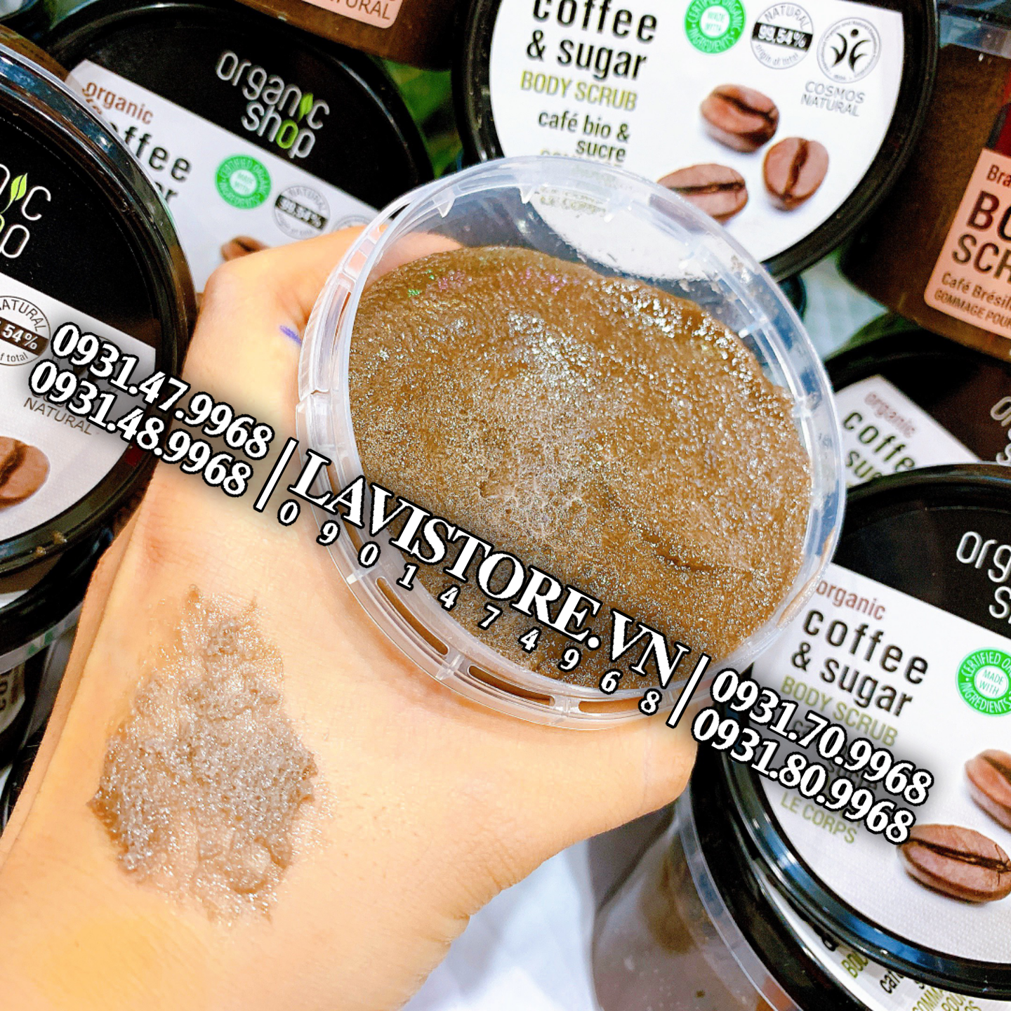 - Kem tẩy da chết toàn thân Organic Shop organic coffee & sugar body scrub chứa chiết xuất hạt cà phê giàu chất chống oxy hóa và thành phần vitamin có tác dụng loại bỏ tế bào chết, làm sạch lỗ chân lông và cung cấp các dưỡng chất cần thiết cho làn da toàn thân trở nên mịn màng và sáng mịn hơn sau mỗi lần sử dụng