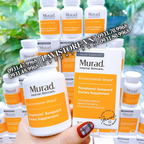 Viên uống Murad Pomphenol Sunguard Dietary Supplement được chiết xuất từ quả lựu nhằm chống oxy hóa mạnh mẽ để chống lại các tổn thương gốc tự do gây ra cho da. Viên uống chống nắng nội sinh Murad còn được gọi là viên uống chống oxy hóa hay viên uống làm đẹp da Murad.