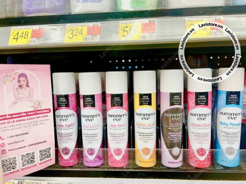 - Dung dịch xịt thơm Summer’s Eve giúp hỗ trợ khử mùi hôi khó chịu, mang lại cảm giác thoáng mát và sạch sẽ suốt cả ngày mà không gây kích ứng da.